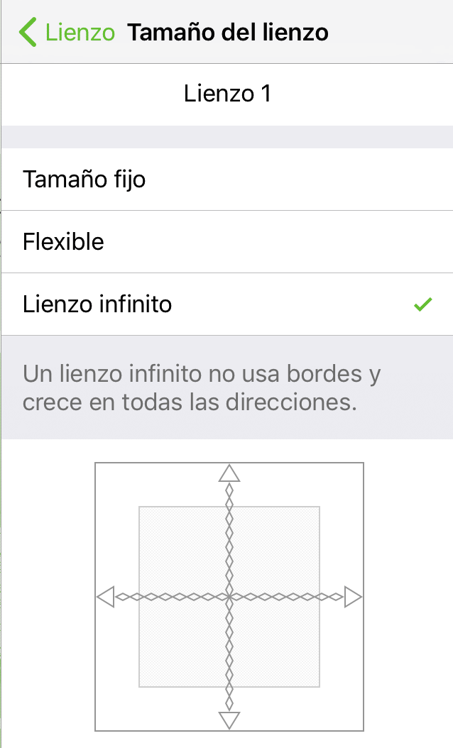 Utiliza el inspector Tamaño del lienzo para especificar el tipo de lienzo; elige entre: